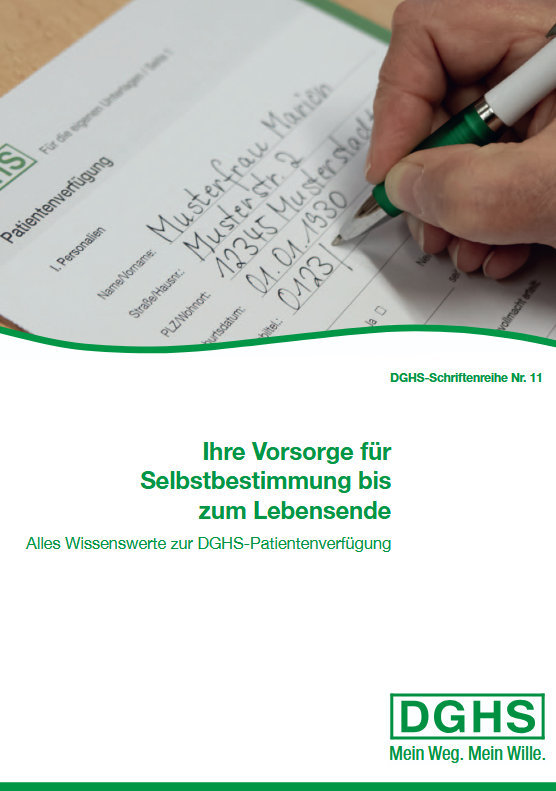 In dieser Selbstdarstellungsbroschüre werden unsere Ziele und Aufgaben beschrieben. Wir bieten unseren Mitgliedern seit über 40 Jahren die optimale Vorsorge in Sachen Patientenverfügung an. Als DGHS-Mitglied ist Ihnen auch unser Rechtsschutz sicher, der sofort einsetzt, sollten wir erfahren, dass Ihre Verfügungen nicht beachtet werden. Außerdem setzen wir uns mit all unserer Kraft und gezielter Lobbyarbeit dafür ein, dass schwerkranke Menschen selbstbestimmt mit Hilfe eines Arztes oder einer Ärztin durch einen ärztlich begleiteten Suizid ihr Leben beenden können, wenn sie dies ausdrücklich wünschen. Werden Sie auch Teil dieser Gemeinschaft! Denn: Gemeinsam können wir die Verwirklichung unserer Ziele – das selbstbestimmte Leben und Sterben – erreichen.